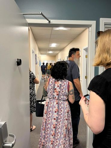May is mental health awareness month, and we wanted to hold a special event to highlight a person's mental health journey. Creative outlets are a great way to heal and cope, so we decided to turn our waiting room into an art exhibit.